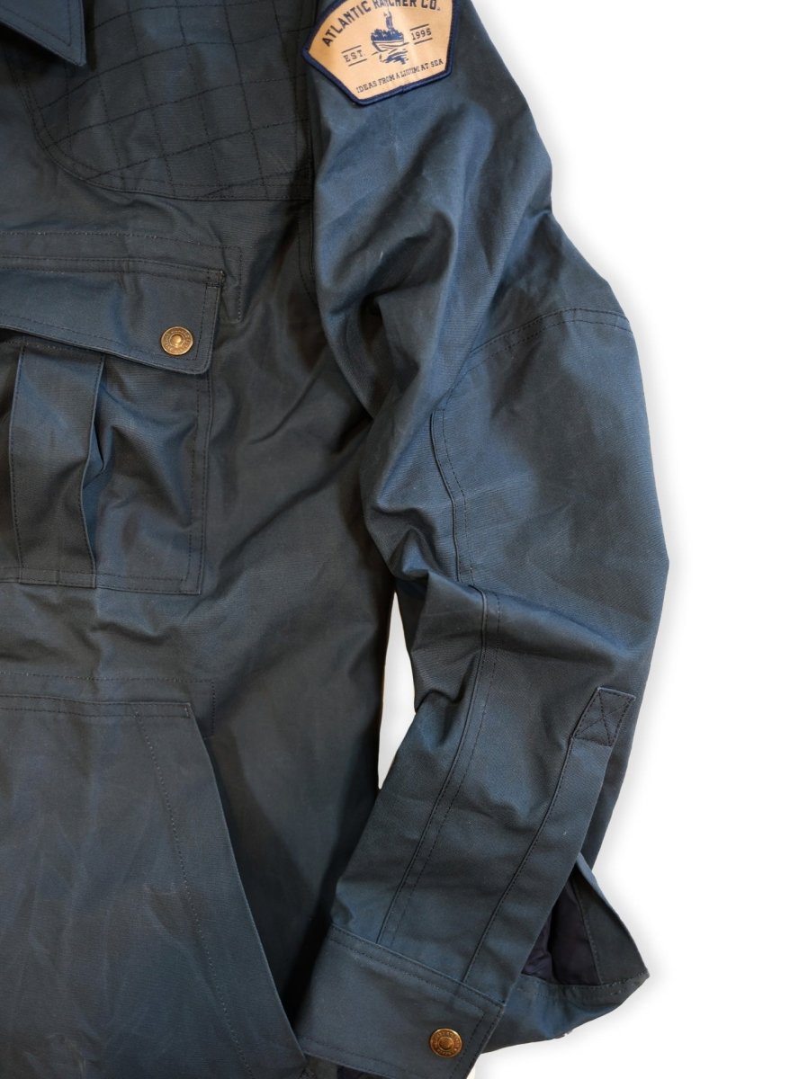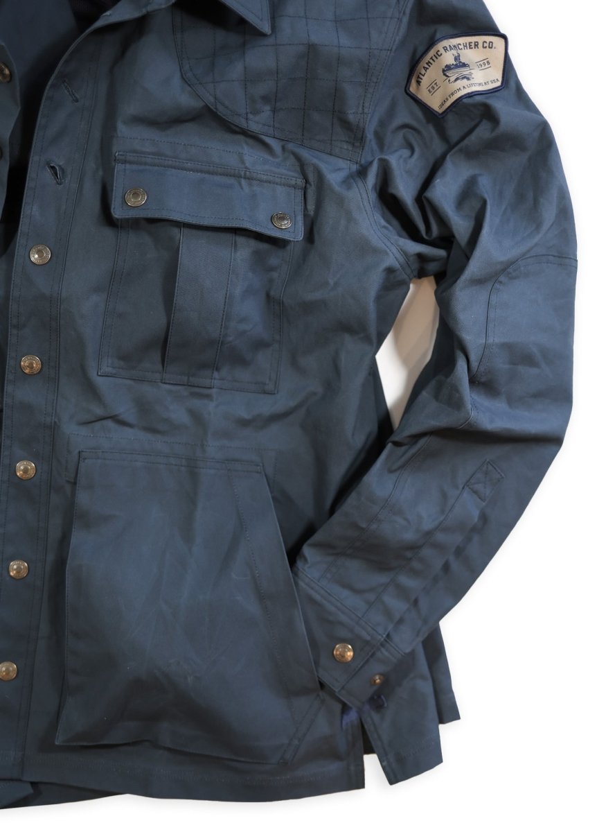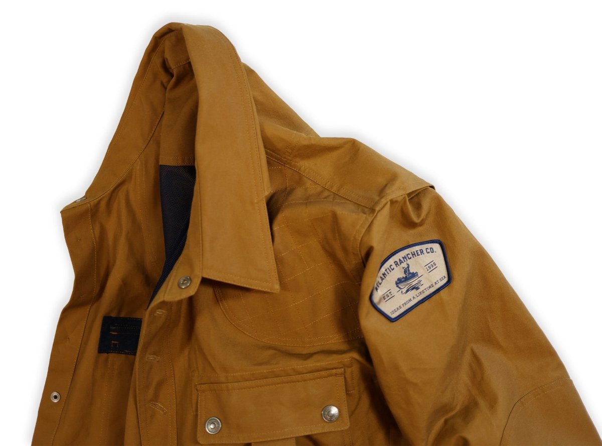 Functional – Every aspect of this jacket is designed to serve the purpose for which it was intended. Thoughtful and carefully assembled, the list is impressive: convertible extreme weather collar; integrated cuff-to-elbow patch; quilted shoulder panels; back yoke ventilation system; solid brass snap closures; Doghouse button configuration at upper chest; bellows pockets throughout.