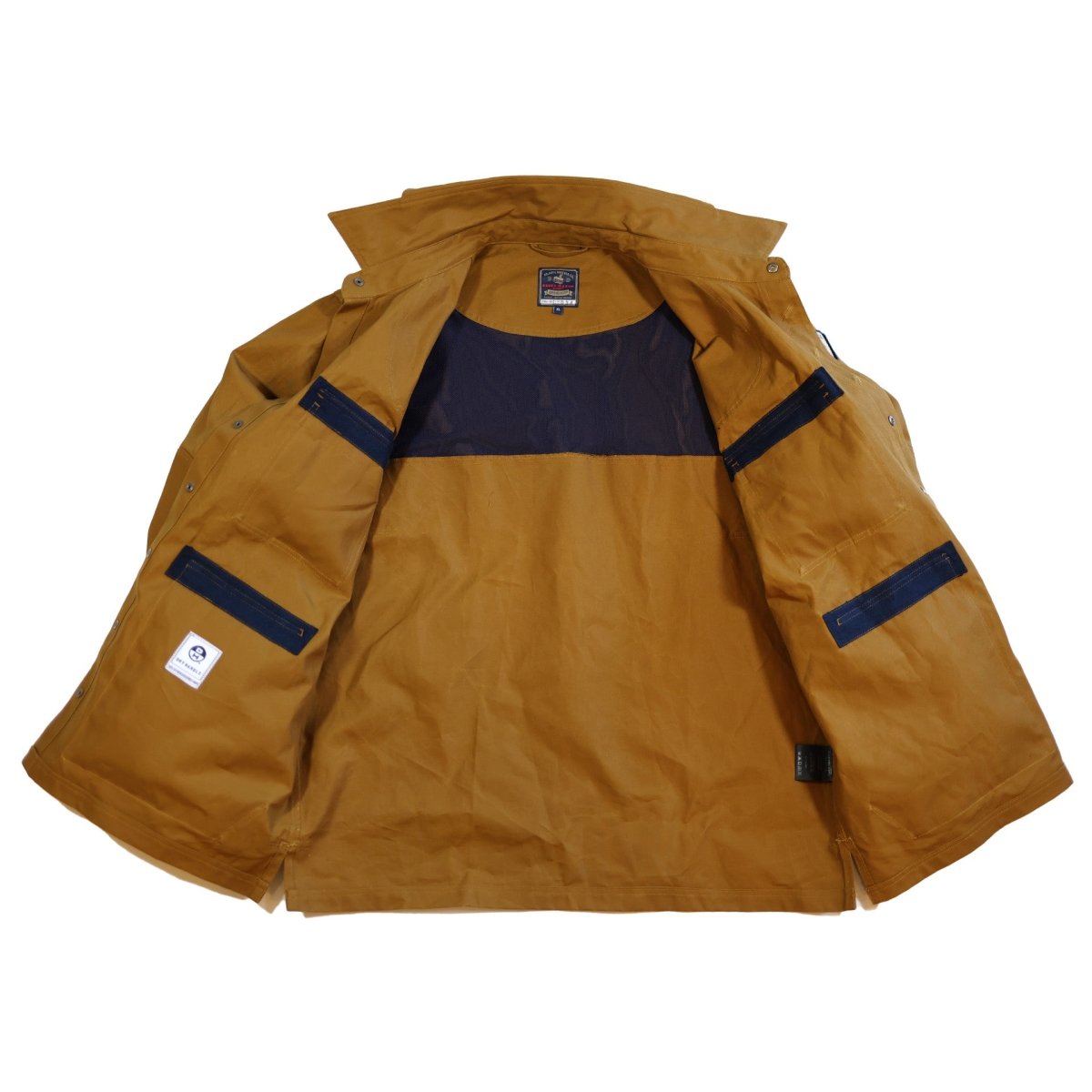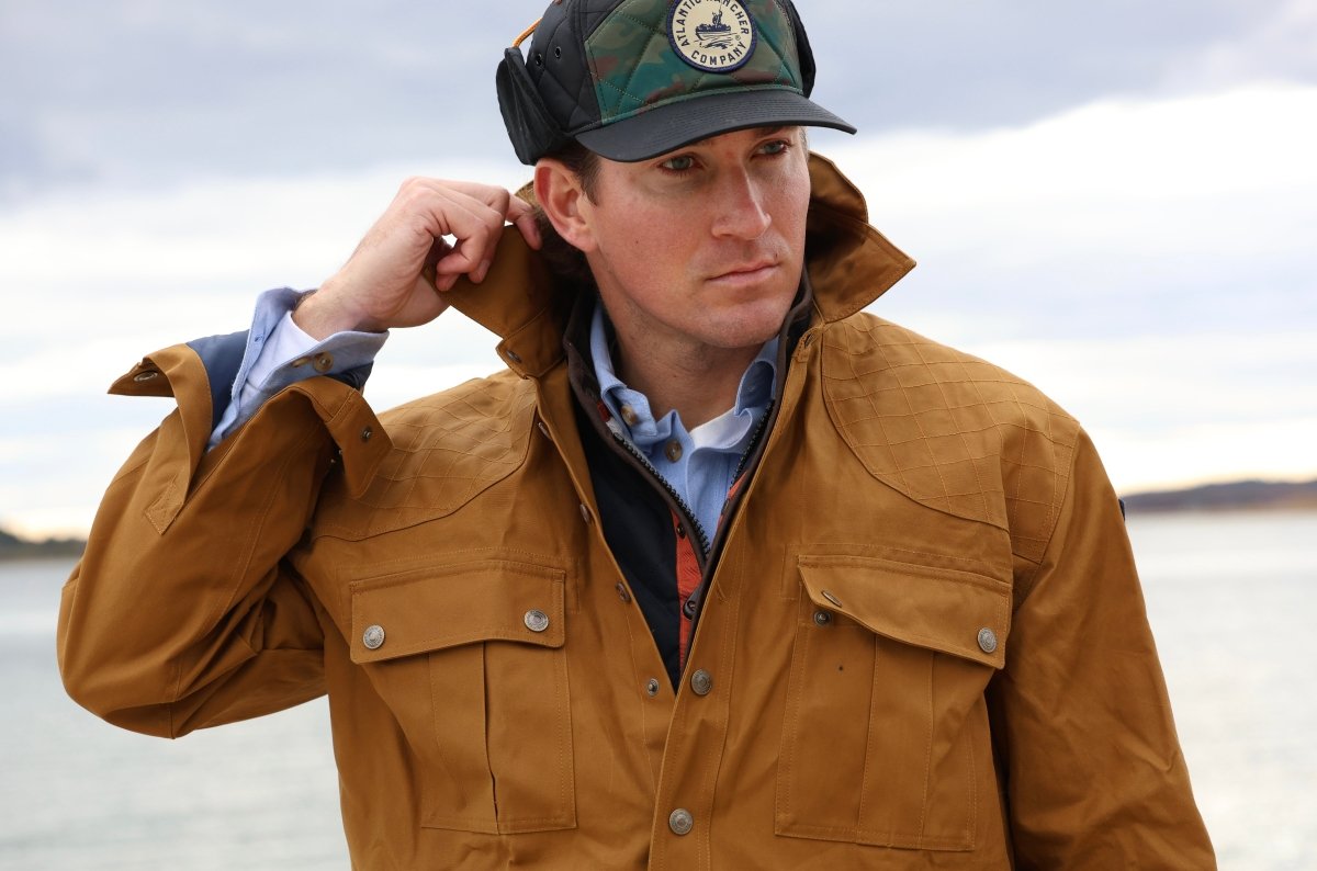 During the early years of the company, the Essex Marsh Shirt/ Jack went through numerous iterations prior to becoming the durable, multipurpose kit of marsh wear it is today, in this 30th Anniv. Edition. The early versions were truly a shirt. But please note this is no longer a shirt, it’s evolved over the years and now presents more as a jacket than a shirt. Forsure, this is not a garment that you will ever tuck in to your pants. This build deploys our heavy weight, 8oz. DryHandle, our proprietary, 100% weatherproof fabric. It’s not built in our shirt shop, but rather in our outerwear shop where heavier fabrics are sewn using much heavier equipment and a hardy TEX 104 size bonded nylon thread. The cut is that of an outerwear garment with plenty of room in the torso, shoulders and sleeves to accommodate considerable