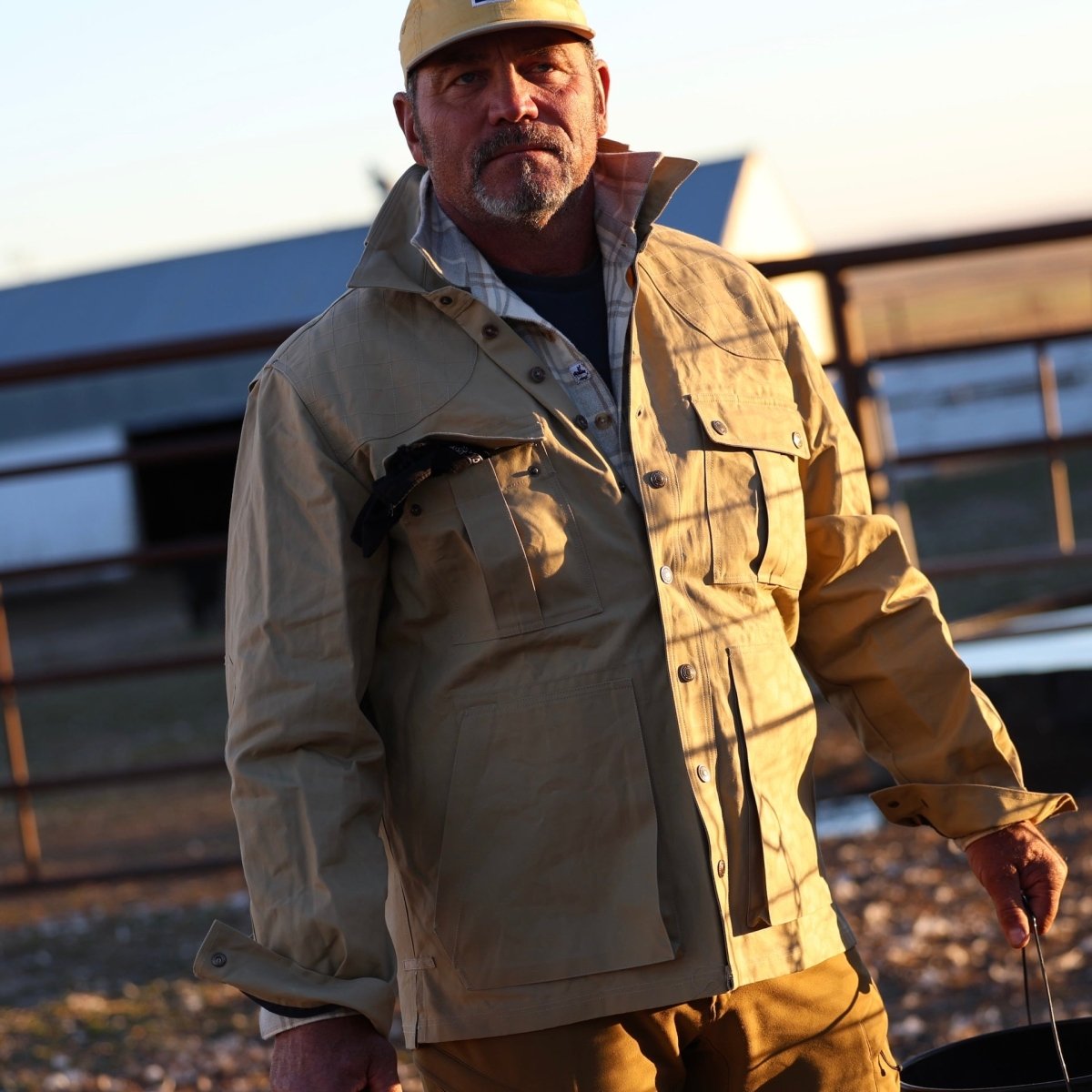 During the early years of the company, the Essex Marsh Shirt/ Jack went through numerous iterations prior to becoming the durable, multipurpose kit of marsh wear it is today, in this 30th Anniv. Edition. The early versions were truly a shirt. But please note this is no longer a shirt, it’s evolved over the years and now presents more as a jacket than a shirt. Forsure, this is not a garment that you will ever tuck in to your pants. This build deploys our heavy weight, 8oz. DryHandle, our proprietary, 100% weatherproof fabric. It’s not built in our shirt shop, but rather in our outerwear shop where heavier fabrics are sewn using much heavier equipment and a hardy TEX 104 size bonded nylon thread. The cut is that of an outerwear garment with plenty of room in the torso, shoulders and sleeves to accommodate considerable