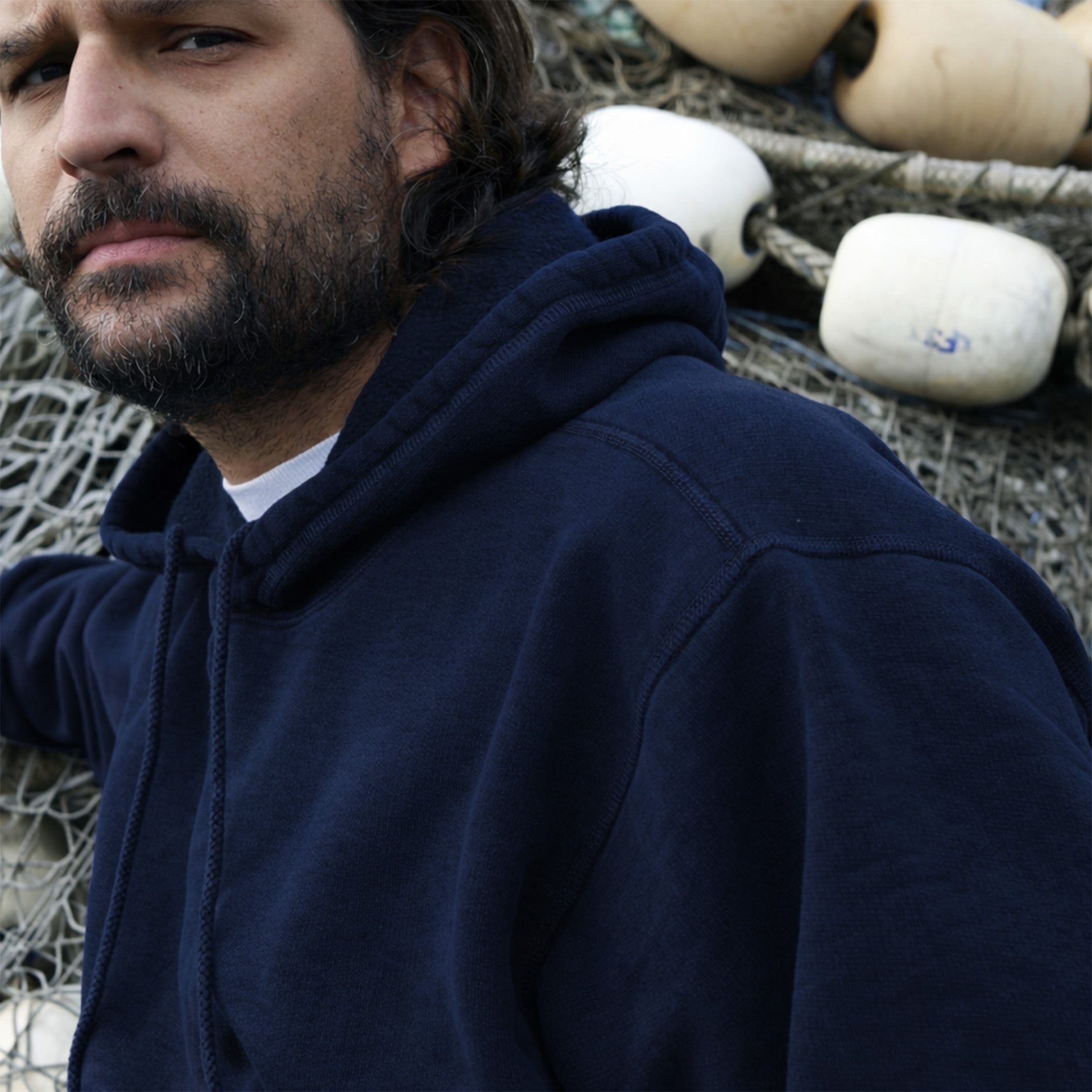 Anyone who’s ever spent a day at the Hudson Canyon in the North Atlantic on a scallop dragger, setting otter boards and tending the net will tell you: be ready to handle all four seasons of weather in just one day. The crews that call Viking Village home and steam out of Barnegat Inlet at the northern tip of Long Beach Island, NJ…well, they know a thing or two about a thing or two. Particularly, how to dress for these wild ass occasions. It’s October and peak of the scallop season and out here you dress in layers or suffer the consequences. And the one piece that’s forever part of this ensemble and common to every deckhand’s gear bag, is a sturdy, durable, 100% cotton hooded sweatshirt.