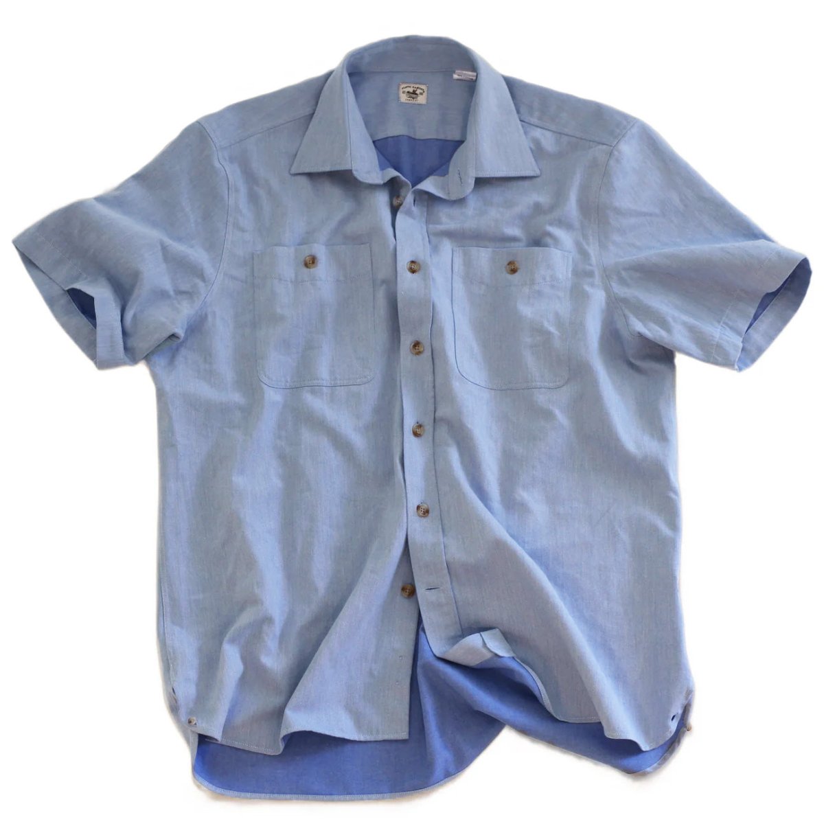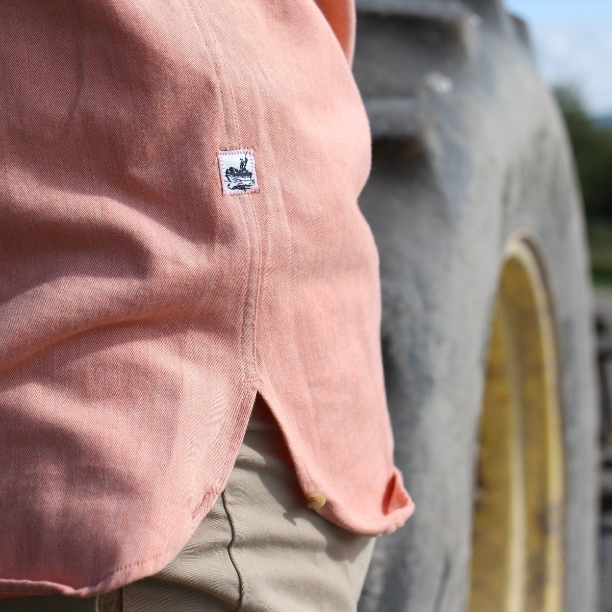 That shirt was a near permanent fixture on my Garvey, laid flat to dry on foredeck day after day… it saw more fresh water from squalls than it ever did from the laundromat. And it’s that vintage, well-worn, salt marred patina it developed over the summer months that, I became hellbent on recreating in a fabric for one of our early Atlantic Rancher, circa 1996, cotton twill shirts.