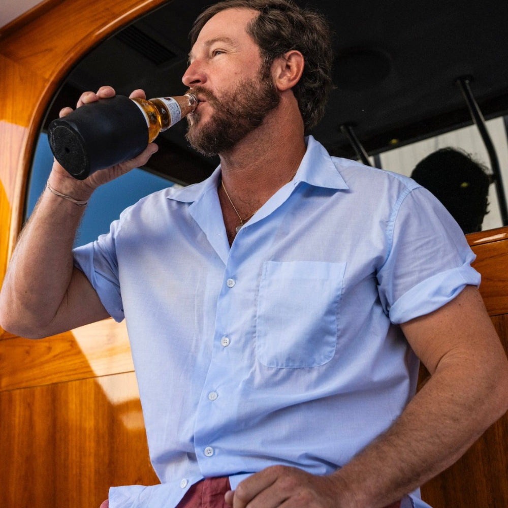 Our Bimini Short Sleeve Shirt is built to be the best for the purpose for which it was intended: fishing the Gulf Stream, in comfort. And you can’t have comfort without the proper fabric. We use a 140x1 compact yarn to build our Bimini Short Sleeve shirt. Why? This combination of yarn size and compact construction yields a finer, smoother fabric that is extremely light weight, just 2.2 oz / sq.mtr. And attitude plays a big part in how this shirt is patterned out and constructed. Uncomplicated. A simple camp collar design that lays the entire collar down… around your neck, not up on your neck, and in front, down and away from the throat. You’ll stay cooler that way. One center back pleat, an ample sized front chest pocket and of course properly cut shirttail that you wear tucked or untucked, with our signature shirttail flap buttons.