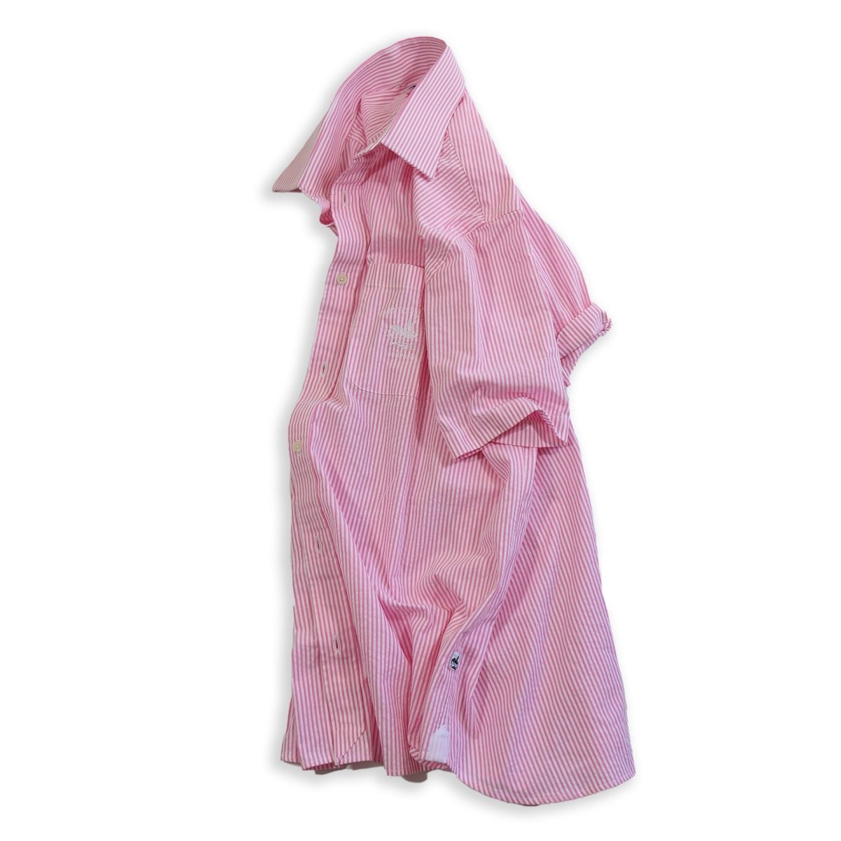 - Short sleeve, point collar, single-needle construction