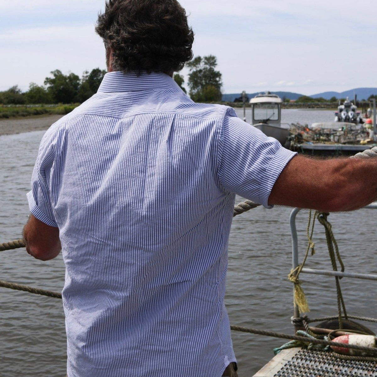 You will, however, immediately recognize the premium quality of its fabric as the sleeves glide up along your forearms and it begins to take shape as you draw it across your shoulders. Once saddled and buttons start meeting buttonholes, you’ll realize you are now wearing your new most favorite shirt. And what an ahoy moment this will be!