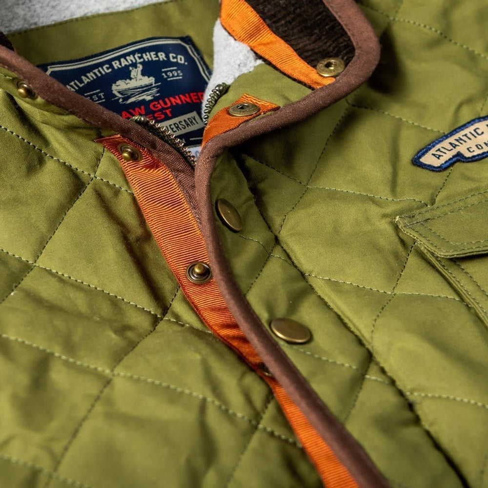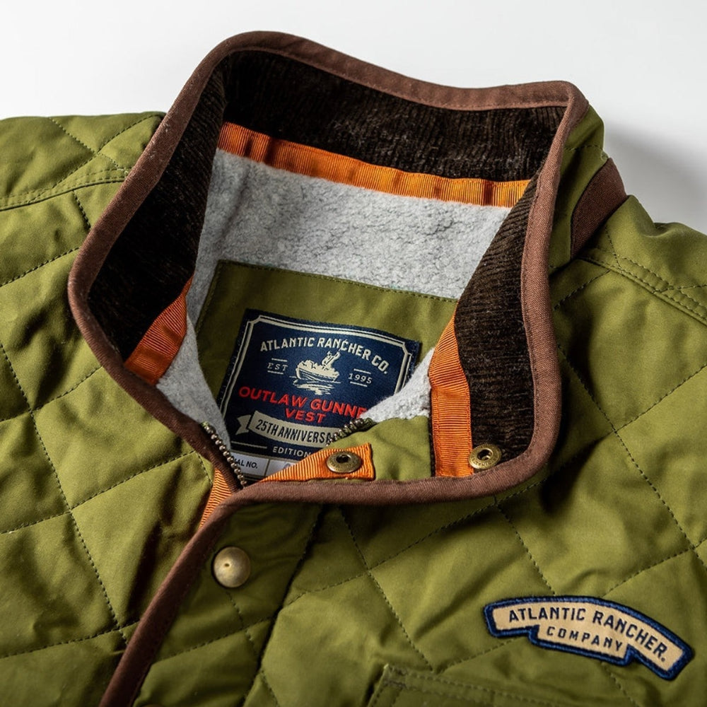 Our 25th Anniversary Outlaw Gunner Vest is a limited production run; each vest is marked with a unique serial number identifier. Made with our exclusive, 6oz. DryHandle®, 100% cotton weatherproof fabric. This vest is the sistership of the time-honored and essential component of warmth on the bay…the Outlaw Gunner Jacket. A tight 2x2 quilt pattern over the DryHandle® helps build air pockets in the poly-fill insulation and keeps them in place. The vest is fully lined with a mid-weight fleece. Outfitted with two large hand-warmer pockets, a front chest pocket, two zippered utility pockets inside. The body is fitted, as a vest should be, so that it can be comfortably layered under other jackets and coats or worn on its own as the secondary outer layer.
