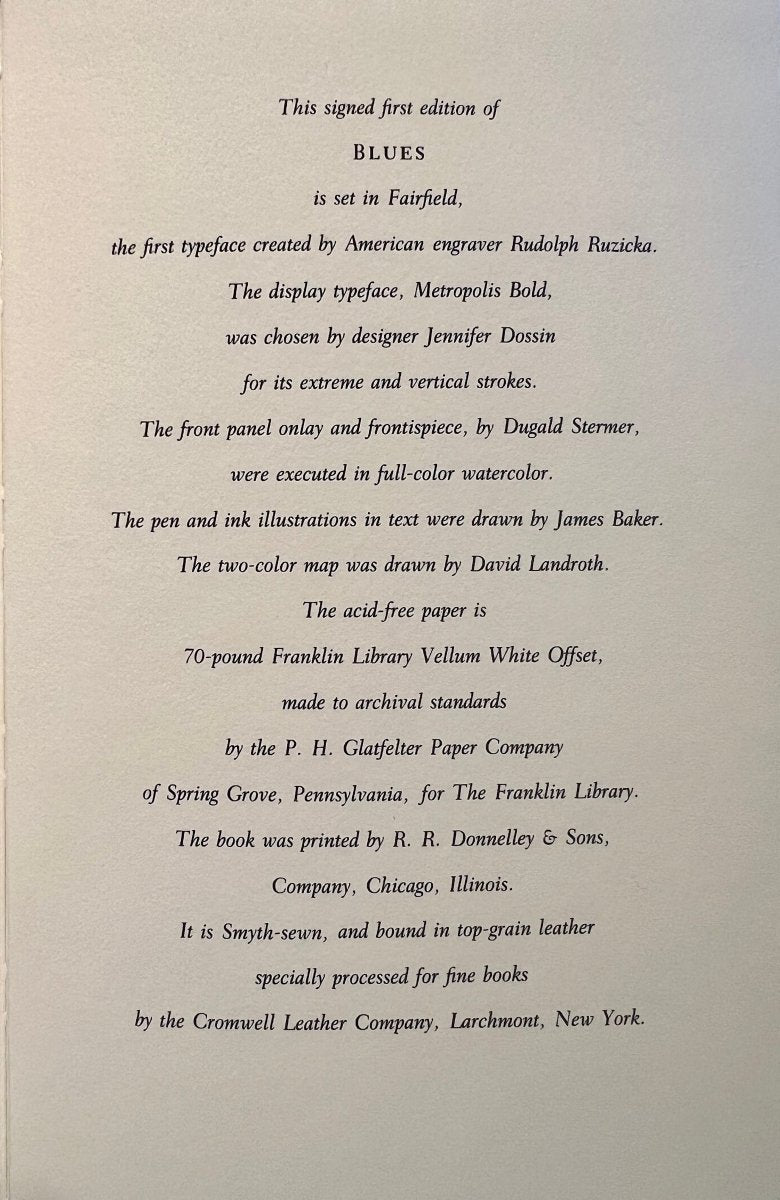 Fine, Accented in 22kt gold, printed on archival paper with gilded edges, smyth sewing & concealed muslin joints. Bound In full leather with hubbed spines. A Limited Edition. ; Signed by author on the free end page.; First Franklin Library Edition.